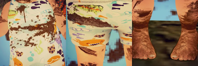 So its that time of month again to showcase what Allergic to pink is doing, And this month the month of May pink is getting dirty. I have two amazing sponsors to show you from Allergic to pink this month Stray Kitties and [Little Deer]. The day had started off as any other in the hotter months. Mommy and daddy had set up the pool for me and Pen. Then it all just happened so fast BOOM POW and the water had turned into cold sticky awesome mud. We couldn't believe our eyes we jumped in the mud threw the mud "whispers" we ate some mud to but do not tell anyone. It was so much fun then we got so hungry from all the playing we went in to fix us a snack. We made such a big mess getting spaghetti mac and cheese some lucky charms and so much more. Most of it ended up on the floor and us and we just giggled and giggled till my mommy came in and was like what the biscuit. We both sat in time out giggling away tho it was so worth it. Best day ever!!! So with that out of the way now i can tell you about these. The mud pool is just completely amazing. Its muddy and fun and the animations are beyond awesome. It came with a muddy teddy bear and muddy plane. Also has a slide for that extra muddy splash. You can also get the cute little outfits muddy shark swim suits one for girls one for boys. and muddy huds to cover your body in mud yay. Stray Kitties you did amazing on this. Then there is the spilled foods i had fun setting up this photo shoot. Messy food all over the floor this is amazing for making a mess for your parents or guardians guaranteed to get you a time out. Big props to [Little Deer] for the messy foods. I cant forget to give Allergic to pink a big shout for hosting this really cool event and the theme of messy is perfect. With all that said i hope you all enjoy the pictures below it was fun taking them. And thank you so much to Penelo faith and her blog beautyand thedork.com huggles Penelo.